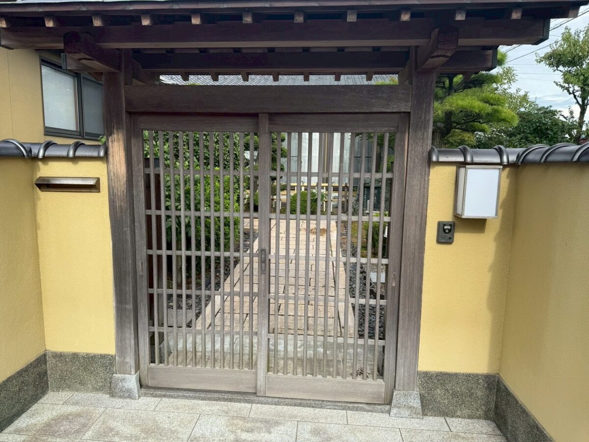 木製建具の塗替えの施工を行いました。 まずはあく洗い、しみ抜き等の行うために薬品を塗布して汚れを落としていきます。